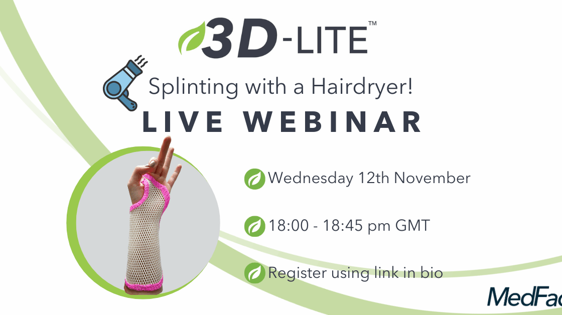 Sign up here 3D-Lite – Splinting with a Hairdryer! – Live Webinar Educational Series Join us for our next live webinar showing you how...
